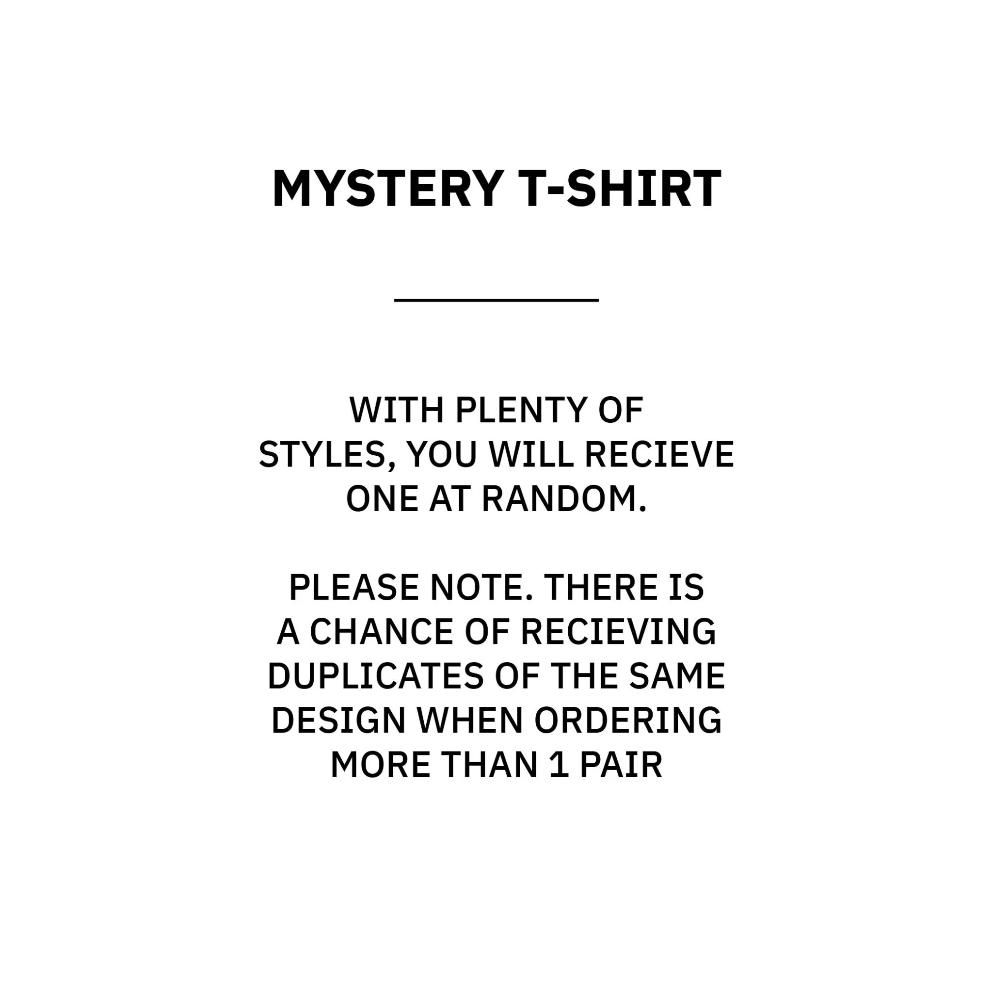 Experience the thrill of surprise with our Mystery Tee! Each t-shirt is a random pick, ensuring you get a unique addition to your wardrobe every time. Just select your size, and we'll handle the rest.